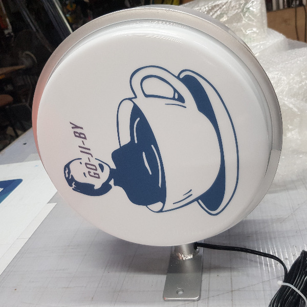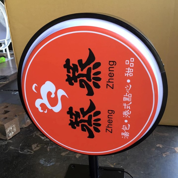 凸面圓形雙面燈箱是一款辨識度高、外型吸睛的 雙面發光小型招牌, 常見於騎樓店面、餐車與巷弄型商家。採用一體成型金屬細邊框搭配壓克力燈箱面板,整體輕盈美觀, 凸面造型在白天更具立體感,夜間發光也能提升遠距辨識度。雙面顯示特別適合人流雙向通行的位置, 讓招牌在不同方向都能清楚被看見,強化店面曝光效果。