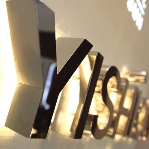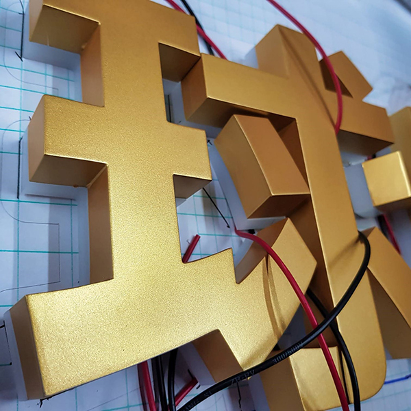 精工字的優勢在於金屬可做更多高級加工,例如 金/銀鍍鈦、金/銀髮絲紋 等, 能呈現精品級質感,因此成為許多高端品牌、精品空間與商辦門面的愛用招牌類型。 由於封閉性相較迷你字更佳,且多為側發光結構,精工字可依需求評估室內或室外使用。