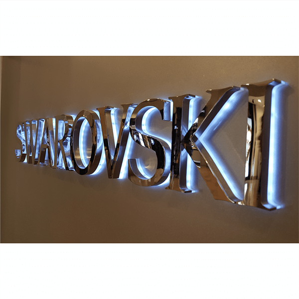 迷你字多為全壓克力結構;精工字則是金屬搭配壓克力,並以側發光為主。 精工字因金屬可做鍍鈦、髮絲紋等高級加工,因此更常用於高端品牌與精品空間。