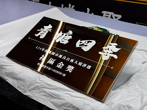 - 蝕刻招牌:線條清晰、凹痕質感明顯、耐用度高,較適合室外長期使用